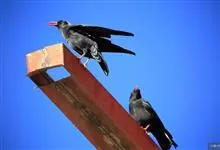 红嘴山鸦,是脊索动物门鸟纲雀形目鸦科鸟类。红嘴山鸦的成鸟通体羽毛纯黑色具有蓝色金属光泽,翼和尾泛有蓝绿色金属光泽;虹膜暗褐色,喙较为尖细,并且呈镰状下弯,喙和脚朱红色。…全部>>