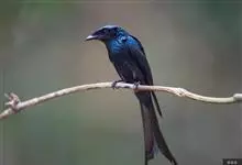 发冠卷尾是中型鸟类,体长28-35厘米。通体绒黑色缀蓝绿色金属光泽,额部具发丝状羽冠,外侧尾羽末端向上卷曲。栖息于海拔1500米以下的低山丘陵和山脚沟谷地带,多在常绿阔叶林、次生林或人工松林中活动。…全部>>