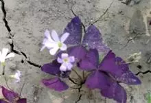 多年生草本,地下块茎粗大。叶丛生,具长柄,掌状复叶,小叶 3枚,无柄,倒三角形,深紫色。紫叶酢浆草植株整齐,叶色紫红,紫红色叶片美丽诱人,粉红色花朵烂漫可爱。有些叶片上有黑色斑点分布,又称斑叶。全部>>