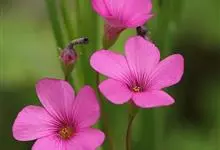红花酢浆草别名铜锤草、大酸味草、幸运草等,是酢浆草科酢浆草属的多年生直立草本植物。其无地上茎,地下部有球状鳞茎;叶基生,叶柄长5~30cm或更长,被毛;花瓣5,倒心形,淡紫色至紫红色,基部颜色较深。…全部>>