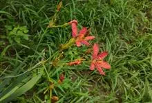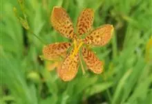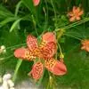 射干 Redouté)是鸢尾科射干属多年生草本植物。根状茎为不规则的块状,斜黄色或黄褐色;花橙红色,散生紫褐色的斑点;花药呈条形;子房下位,倒卵形;蒴果倒卵形或长椭圆形;种子圆球形,黑紫色,有光泽。…全部>>