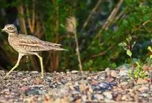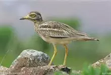 石鸻,是石鸻科、石鸻属的中型涉禽,体长40-45厘米。嘴粗厚、尖端黑色,基部黄色。脚长而粗、黄色,3趾,后趾缺失。上体淡沙灰褐色具黑褐色纵纹,前额和眼先白色。眼特别大、黄色,其外有一窄的黑圈,…全部>>