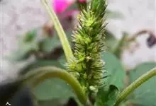 反枝苋是苋科苋属的一年生草本植物。株高达1米;茎密被柔毛;叶菱状卵形或椭圆状卵形,先端锐尖或尖凹,两面及边缘被柔毛,下面毛较密;穗状圆锥花序,顶生花穗较侧生者长;花被片长圆形或长圆状倒卵形,…全部>>