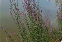 千屈菜是千屈菜科千屈菜属的多年生草本植物;根茎粗壮;叶披针形或宽披针形,无柄;花序簇生,呈聚伞状,花梗及花序梗甚短,花枝似一大型穗状花序,红紫色或淡紫色,苞片宽披针形或三角状卵形;果实为蒴果,扁圆形。…全部>>