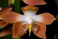 萼脊兰 Garay et Sweet):茎长约1厘米,被宿存的叶鞘所包。叶4-6枚,长圆形或倒卵状披针形。总状花序长18厘米,下垂,疏生6朵花;花具橘子香气,萼片和花瓣白绿色;萼片长圆形,长1.7厘…全部>>