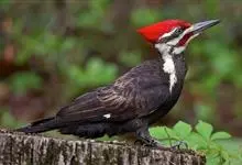 白腹黑啄木鸟,是啄木鸟科、黑啄木鸟属的中型鸟类,体长43-46厘米,头顶具长的红色羽冠,颚纹亦为红色,其余头、颈、胸和上体黑色,腰和腹白色,飞翔时白色腋羽和翅下覆羽亦明显可见。雌鸟头顶黑色,…全部>>