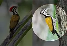 三趾啄木鸟,是啄木鸟科、啄木鸟属的小型鸟类,体长20-23厘米,雄鸟头顶金黄色,雌鸟黑色而具白色斑点。眼至耳覆羽黑色,眼后有一条白色纵纹,颊纹白色,颚纹黑色,甚为醒目。枕和后颈黑色,…全部>>