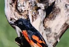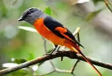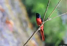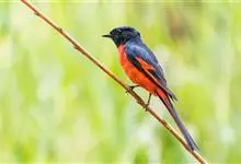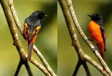灰喉山椒鸟:共有8个亚种。体长18-22厘米。雄鸟头部和背亮黑色,腰、尾上覆羽和下体朱红色,翅黑色具一大一小的两道朱红色翼斑。中央尾羽黑色,外侧尾羽基部黑色,端部红色。…全部>>