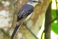 灰山椒鸟:体长18-20厘米。上体灰色或石板灰色,两翅和尾黑色,翅上具斜行白色翼斑,外侧尾羽先端白色。前额、头顶前部、颈侧和下体均白色,具黑色贯眼纹。雄鸟头顶后部至后颈黑色,雌鸟头顶后部和上体均为灰色。…全部>>