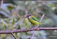 金喉拟啄木鸟,是须鴷科、拟啄木鸟属的鸟类。金喉拟啄木鸟为小型鸟类,体长19-24厘米。额深红色,头顶金黄色,后枕具一大块深红色斑,耳羽和头侧银灰色,上体草绿色,颏和上喉金黄色,下喉淡银灰色,…全部>>