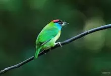 蓝喉拟啄木鸟,是须鴷科、拟啄木鸟属的鸟类。蓝喉拟啄木鸟为小型鸟类,体长20-23厘米。前额至头顶鲜红色,其上有一宽阔的黑色横带,将此红色分为前后二块;头侧、颏、喉蓝色,下喉两侧各具一红色点斑。…全部>>