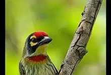 金喉拟啄木鸟,是须鴷科、拟啄木鸟属的鸟类。金喉拟啄木鸟为小型鸟类,体长19-24厘米。额深红色,头顶金黄色,后枕具一大块深红色斑,耳羽和头侧银灰色,上体草绿色,颏和上喉金黄色,下喉淡银灰色,…全部>>