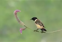 黑喉石鵖,雀形目鹟科石鵖属小型鸣禽,俗名谷尾鸟、黑喉石。其体色为黑褐色。雄鸟头部、背部、两翼及尾黑色,颈侧及翼上具白斑,胸部和腹侧红棕色,腰及尾下覆羽白色。雌鸟体色为褐色,上体具深色纵纹,胸部染棕色,…全部>>