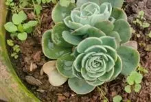 蓝石莲是景天科、拟石莲花属的多肉植物。茎部粗壮,成熟植株茎部木质化。叶片莲座型密集排列,株径不会很大,叶片相对较薄,常年绿色,表面布有白色粉末,中部凹陷,呈倒水滴状。叶尖较尖,叶缘光滑无褶皱,…全部>>