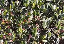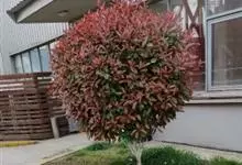 石楠 Kalkman),是蔷薇科石楠属的常绿乔木,高5~12米,株型紧凑,树冠圆球形。树枝为褐灰色;鳞片为褐色,没有毛;叶片革质,长椭圆至侧卵状椭圆形,有锯齿,新叶红色光亮。复伞房花序,白色小花,…全部>>