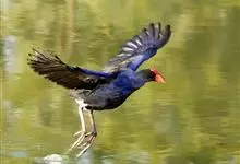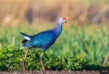 紫水鸡是秧鸡科紫水鸡属鸟类。下辖12个亚种,中国为云南亚种。体长40-45厘米,体羽大多为紫蓝色,翅表面和胸蓝绿色;尾下覆羽白色;嘴红色,粗大并与橙红色额甲相接;额甲宽阔,后缘呈截平状;雌雄鸟相似,…全部>>