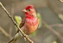 酒红朱雀小型鸟类,体长13~15厘米。雄鸟通体深红色,头部深朱红或棕红色,下背和腰玫瑰红色,眉纹粉红色而具丝绢光泽。两翅和尾黑褐或灰褐色、具暗红色狭缘,内侧两枚三级飞羽具淡粉红色先端。…全部>>