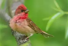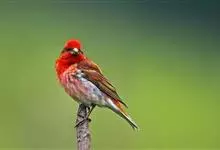 酒红朱雀小型鸟类,体长13~15厘米。雄鸟通体深红色,头部深朱红或棕红色,下背和腰玫瑰红色,眉纹粉红色而具丝绢光泽。两翅和尾黑褐或灰褐色、具暗红色狭缘,内侧两枚三级飞羽具淡粉红色先端。…全部>>