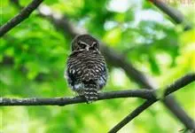 鬼鸮是鸟纲鸱鸮科的鸟类, 全长23-26厘米。共有6个亚种。雌雄羽色相同。额、头顶及枕部褐色,有白色椭圆斑。面盘白色外侧羽缘褐色。胸以下为白色,有褐色纵斑。翅褐色。…全部>>