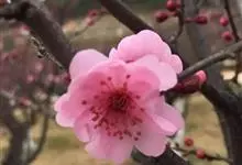 梅:蔷薇科、李属木本植物。小乔木,稀灌木,高4-10米;树皮浅灰色或带绿色,平滑;小枝绿色,光滑无毛。叶片卵形或椭圆形,叶边常具小锐锯齿,灰绿色。花单生或有时2朵同生于1芽内,直径2-2.5厘米,…全部>>