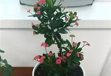 铁海棠为大戟科大戟属蔓生灌木植物;茎多分枝,具纵棱,呈旋转状;叶互生,通常集中于嫩枝上;每个花序基部边缘具微小的红色尖头;苞叶先端圆且具小尖头,无柄,上面鲜红色,下面淡红色;苞片丝状;子房光滑无毛,…全部>>