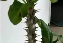 虎刺梅:别称铁海棠,是蔓生灌木植物。茎多分枝,长60-100厘米,直径5-10毫米,具纵棱,密生硬而尖的锥状刺,刺长1-1.5厘米,直径0.5-1.0 毫米,常呈3-5列排列于棱脊上,呈旋转。叶互生…全部>>