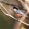 杂色山雀,是山雀科山雀属的一种动物。体重17-18克,体长125-140毫米。雌雄羽色相似。额、眼先、耳羽至颈侧乳黄色,头顶至后颈黑色,后头中央有一白斑。上背栗色,上体余部及翼蓝灰色。颏、喉黑色,…全部>>