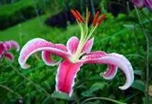 山丹是百合科百合属的多年生草本植物。鳞茎卵形或圆锥形,鳞片长圆形或长卵形,白色;叶散生茎中部,线形,边缘有乳头状突起;花单生或数朵成总状花序,花鲜红色,常无斑点,花被片反卷,…全部>>