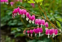 荷包牡丹 Fukuhara),是罂粟科荷包牡丹属的多年生草本植物,株高30-60厘米,具肉质根状茎;茎直立呈圆柱形;叶二回三出全裂,状似牡丹叶;总状花序顶生,基部为心形,花瓣紫红色至粉红色,稀白色,…全部>>