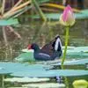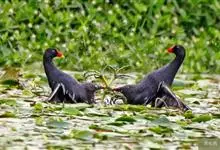 黑水鸡:是鹤形目、秧鸡科的鸟类,共有12个亚种。中型涉禽,体长24-35厘米。嘴长度适中,鼻孔狭长;头具额甲,后缘圆钝;嘴和额甲色彩鲜艳。翅圆形,第2枚初级飞羽最长,或第2枚和第3枚初级飞羽等长,…全部>>