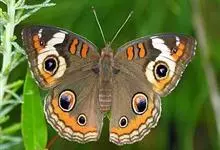 美眼蛱蝶为鳞翅目、蛱蝶科、眼蛱蝶属节肢动物。除西北外,全国各地均有分布,国外分布于日本及东南亚。幼虫以马鞭草科的过江藤、车前草科的车前草等为食。全部>>