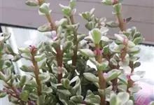 雅乐之舞是马齿苋科马齿苋属多年生肉质灌木植物。植株较矮,株高3~4米;水平分枝,枝干较细;茎肉质,老茎灰白色,新茎红褐色;叶片肉质,黄白色倒卵形,中间为淡绿色新叶,叶缘还带有粉红色;开淡粉色小花,…全部>>