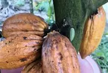 可可是锦葵科、可可属常绿乔木,树冠繁茂,树皮厚,暗灰褐色;嫩枝褐色,被短柔毛;花五瓣,淡黄色,稍长于花萼;叶具短柄,卵状长椭圆形至倒卵状长椭圆形;核果椭圆形或长椭圆形初为淡绿色,后变为深黄色或近于红色,…全部>>