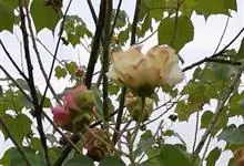 木芙蓉,锦葵科木槿属落叶灌木或小乔木。小枝上有细绒毛;叶片为卵状心形,托叶为披针形,常早落;花单生,花萼为钟形,花冠初为白色或淡红色,后逐渐变为深红色;果实为扁球形,有淡黄色的毛附着。花期8到10月。…全部>>