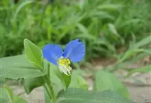 鸭跖草,是鸭跖草科鸭跖草属的—年生披散草本植物。鸭跖草的茎匍匐生根,多分枝;叶披针形或卵状披针形;萼片膜质,花瓣深蓝色;蒴果椭圆形;种子棕黄色,一端平截,腹面平,有不规则窝孔;花期7-9月,…全部>>