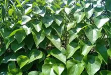 千金藤 Miers),防己科千金藤属多年生草质或近木质缠绕藤本植物。根圆柱状;皮暗褐色;小枝细弱而韧,老茎木质化圆柱形;叶阔卵形草质或纸质;花序伞状腋生,花小黄绿色;核果球形红色;花期5-6月,…全部>>