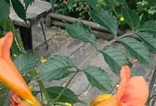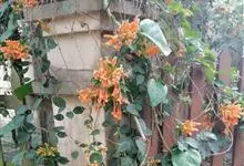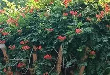 凌霄 Schum.),别名上树龙、五爪龙、九龙下海等,为紫葳科凌霄属的攀援藤本植物。其茎木质,以气生根攀附于它物之上。叶对生,为奇数羽状复叶;小叶卵形至卵状披针形,边缘有粗锯齿;顶生疏散的短圆锥花序,…全部>>