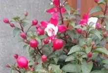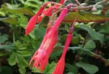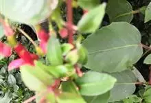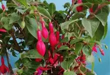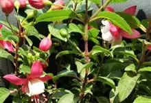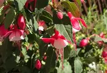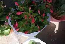 倒挂金钟是柳叶菜科倒挂金钟属亚灌木植物。茎直立,多分枝;幼枝带红色,被短柔毛与腺毛,老时渐无毛;叶对生,卵形或窄卵形,脉常带红色;常带红色,被短柔毛与腺毛;花筒红色,筒状钟形,…全部>>