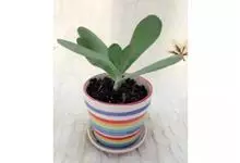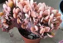 唐印为景天科伽蓝菜属的多年生肉质草本植物。植株中型,株高50厘米,宽20厘米,多分枝;叶片肉质,对生,卵形,全缘,先端钝圆,叶片淡绿色至灰绿色,表面被有厚厚的白粉,光照充足时,叶缘呈红色;圆锥花序,…全部>>
