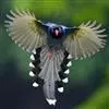 台湾蓝鹊:体长64至65厘米,翼展18至21厘米,尾长约40厘米,尾羽长占了总体长的三分之二。头、脸、颈、喉、胸都是黑色,黄色的眼珠包围黑色的瞳孔,鲜红色的鸟喙、双脚,…全部>>