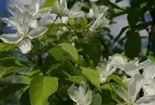 山荆子 Borkh.):为落叶乔木,树高可达4-5米,最高可达10米以上。灰褐色,光滑,不易开裂。新梢黄褐色,无毛。嫩梢绿色微带红褐。叶片椭圆形,先端渐尖,基部楔形,叶缘锯齿细锐。伞形总状花序。花白色,…全部>>