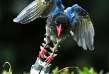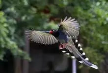 台湾蓝鹊:体长64至65厘米,翼展18至21厘米,尾长约40厘米,尾羽长占了总体长的三分之二。头、脸、颈、喉、胸都是黑色,黄色的眼珠包围黑色的瞳孔,鲜红色的鸟喙、双脚,…全部>>