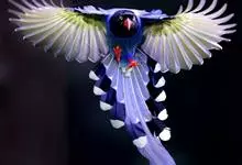 台湾蓝鹊:体长64至65厘米,翼展18至21厘米,尾长约40厘米,尾羽长占了总体长的三分之二。头、脸、颈、喉、胸都是黑色,黄色的眼珠包围黑色的瞳孔,鲜红色的鸟喙、双脚,…全部>>