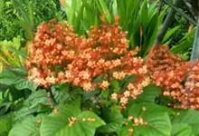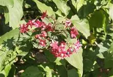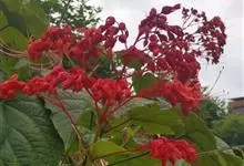 赪桐 Sweet)是唇形科、大青属灌木,高1-4米,叶片圆心形,顶端尖或渐尖,基部心形,边缘有疏短尖齿,表面疏生伏毛,二歧聚伞花序组成顶生,大而开展的圆锥花序,花序的最后侧枝呈总状花序,花萼红色,…全部>>