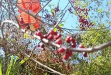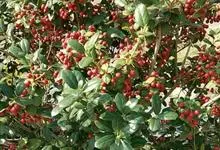 火棘 H. L. Li)是蔷薇科火棘属常绿灌木,老枝呈暗褐色;叶片呈倒卵形,边缘有钝锯齿,齿尖向内弯,两面皆无毛;叶柄短,无毛或嫩时有柔毛;花序是复伞房状,花瓣呈白色近圆形;果球近圆形,…全部>>