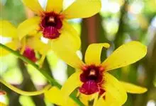 束花石斛是兰科石斛属植物。茎粗厚,肉质,下垂或弯垂,圆柱形,不分枝,具多节。叶二列,互生于整个茎上,纸质,长圆状披针形。伞状花序近无花序柄,每2-6花为一束,侧生于具叶的茎上部;花黄色,…全部>>