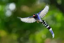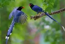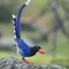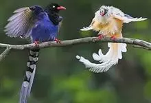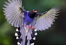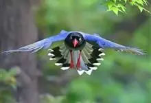 台湾蓝鹊:体长64至65厘米,翼展18至21厘米,尾长约40厘米,尾羽长占了总体长的三分之二。头、脸、颈、喉、胸都是黑色,黄色的眼珠包围黑色的瞳孔,鲜红色的鸟喙、双脚,…全部>>
