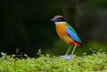 蓝翅八色鸫是雀形目八色鸫科的鸟类。体长17-20厘米,体重类约48-70克,体型圆胖,尾短,腿长,以身体具有红、绿、蓝、白、黑、黄、褐、栗等鲜艳夺目,丰富艳丽的色彩而得名,是很有观赏价值的鸟类。主要…全部>>