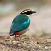 蓝八色鸫是雀形目八色鸫科的鸟类,体长约24厘米,体重109克左右。体型圆胖,尾短,腿长。羽色鲜艳,头顶两侧橘黄色的宽带延伸至颈背,宽宽的过眼纹黑色,脸颊皮黄,髭纹黑,尾亮蓝色。雌鸟较雄鸟色暗,…全部>>