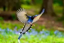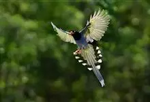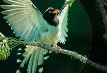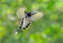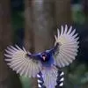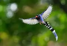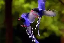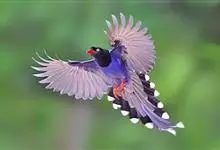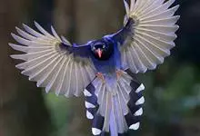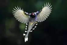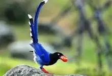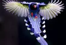 台湾蓝鹊:体长64至65厘米,翼展18至21厘米,尾长约40厘米,尾羽长占了总体长的三分之二。头、脸、颈、喉、胸都是黑色,黄色的眼珠包围黑色的瞳孔,鲜红色的鸟喙、双脚,…全部>>